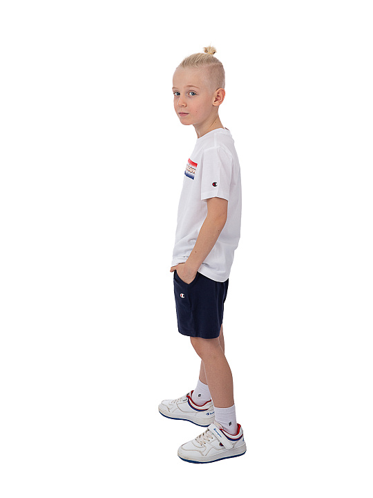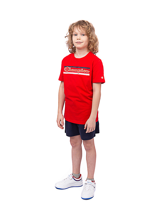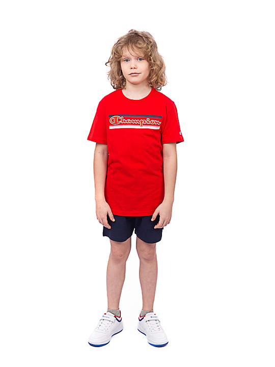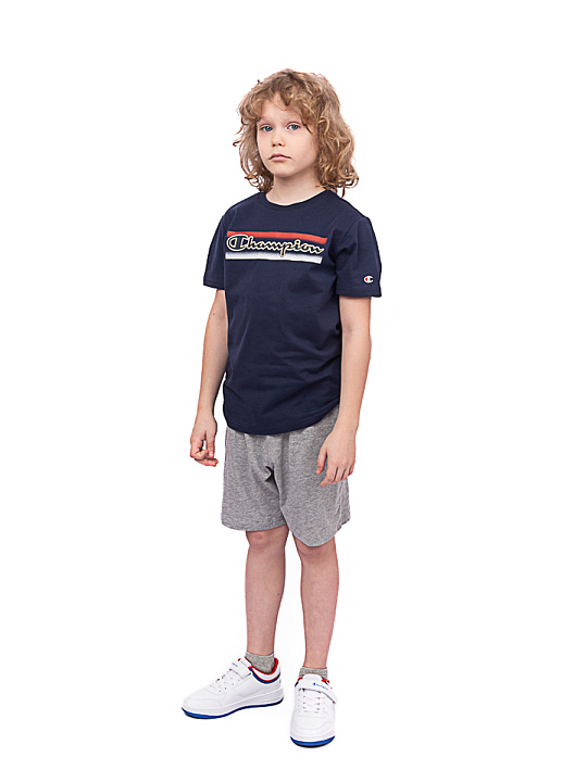 Детский и подростковый комплект Champion из коллекции Graphic Shop - Legacy. Футболка: простой крой, короткие рукава. Шорты: простой крой, боковые карманы, пояс на резинке регулируется шнурком. Логотип большой в графике по центру на футболке, маленький на шортах, принт. Ткань Light Cotton Jersey Melange CO/VI Top Dyed Col. OXGM gr. 150, хлопок. Комплект подойдет для повседневного образа. Базовый элемент гардероба на каждый день. Вид материала: трикотаж. Стирать при температуре 30 градусов, следовать рекомендациям на этикетке.