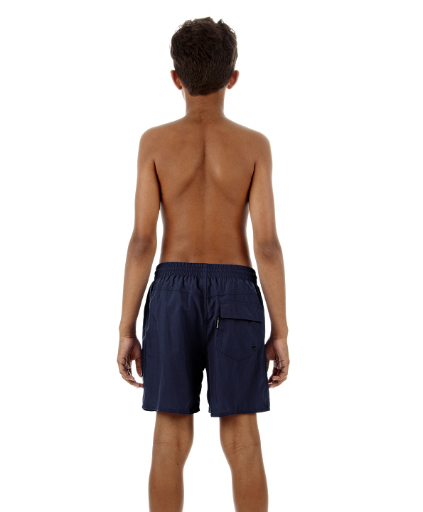 Подростковые пляжные шорты.Быстро сохнут.Ткань не утяжеляется в воде.Задний карман накладной с клапаном, на липучке.Система слива воды из карманов.Сзади небольшая кокетка для лучшей посадки.Талия на внутренней кулиске.Длина по боковому шву 38см.Логотип - вертикальный, принт.